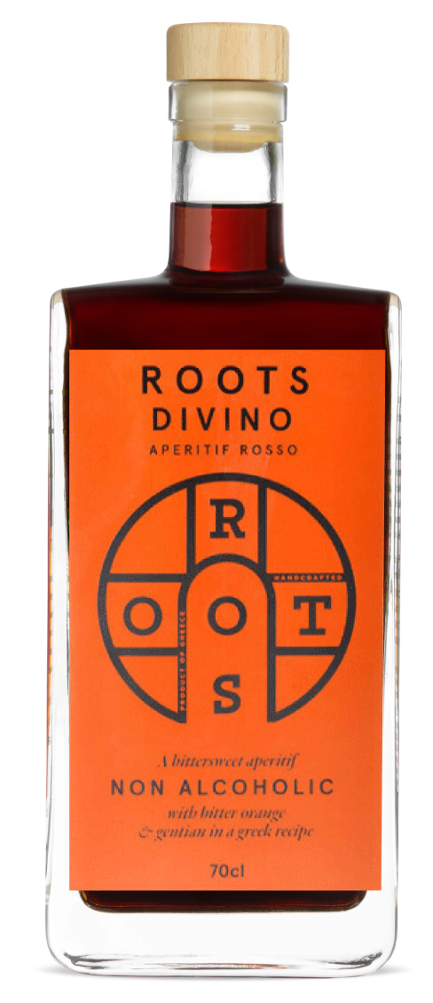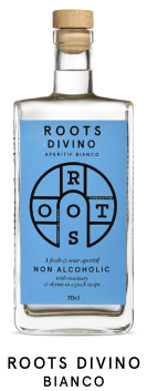 ROOTS DIVINO are non-alcoholic aperitifs based on wine (di vino). The halo shape on the label symbolizes the “divine” effect of enjoying a drinking occasion without the alcohol. 0% alc/vol craft aperitifs, with a story to tell